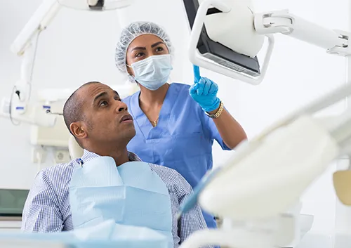 A dentist is a doctor who specializes in dental health. They help with prevention, diagnosis, and treatment of dental health problems. A dentist goes to school for at least 8 years and some dentists attend even longer for certain specialities. Some specialties are: Orthodontics, Periodontics (gum disease), Prosthodontics (implants), and Endodontics (root canal), to name a few. If you are looking for a dentist near you, our family dental office is available to help you and your family meet your dental needs.